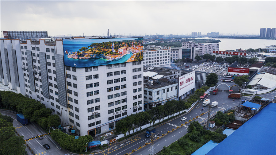 由艾比森為格蘭仕打造的L形曲面巨型LED顯示屏,奪目鮮艷的顯示畫面,為無聲沉寂的工業(yè)區(qū)喚醒了新的活力。整個屏幕面積達800平方米,無論白天還是黑夜,都是當?shù)刈钍荜P(guān)注的風景,為格蘭仕展示企業(yè)形象及品牌傳播提供了最大程度的正向曝光。