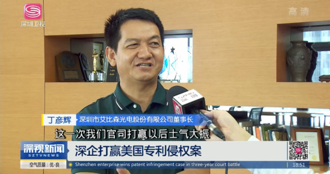 艾比森董事長丁彥輝先生就勝訴事件接受深圳衛(wèi)視專訪