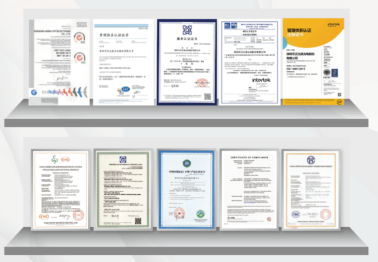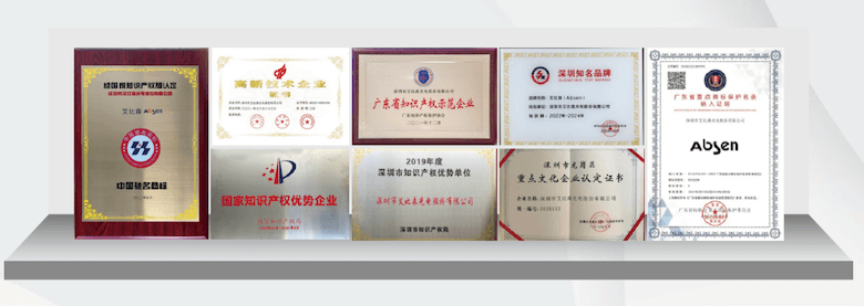 “艾比森”和“Absen”商標(biāo)獲國家知識產(chǎn)權(quán)局認定為“中國馳名商標(biāo)”,并榮獲“國家級高新技術(shù)企業(yè)”、“廣東省知識產(chǎn)權(quán)示范企業(yè)”、“深圳市知識產(chǎn)權(quán)優(yōu)勢單位”、 “廣東省著名商標(biāo)”、“深圳知名品牌”等榮譽,艾比森已通過ISO9001質(zhì)量管理體系、ISO14001環(huán)境管理體系、QC080000有害物質(zhì)過程管理體系、ISO45001職業(yè)健康安全管理體系認證,絕大多數(shù)產(chǎn)品通過了CE、ETL、EMC等歐美國際認證。