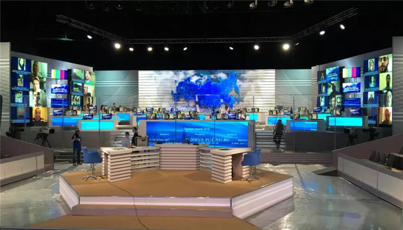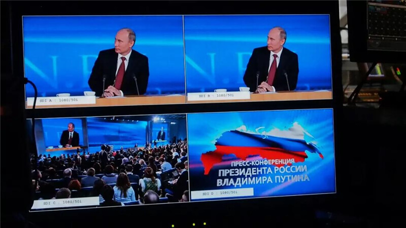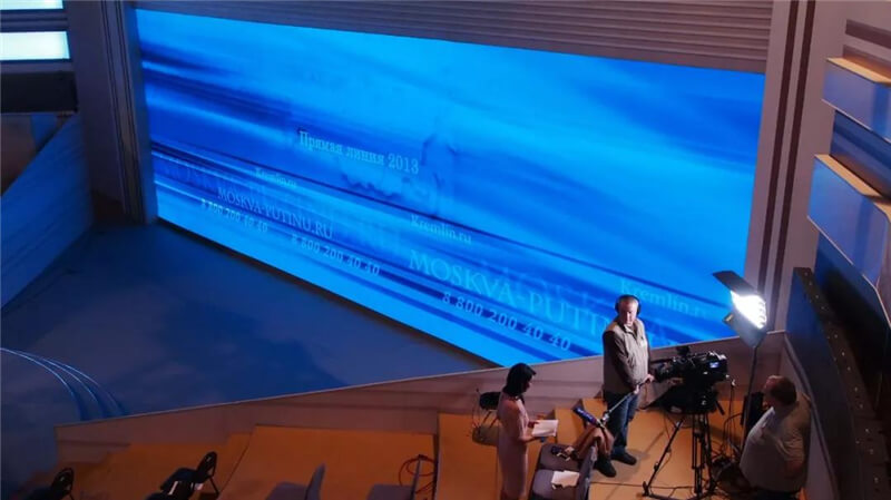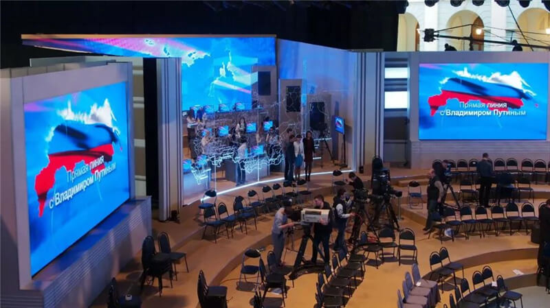 2013年4月25日,俄羅斯總統(tǒng)普京開通第11次“普京熱線”直播,這是普京重任總統(tǒng)任期內(nèi)首次通過“普京熱線”與俄公眾面對面交流,節(jié)目長達4個多小時,面向全球直播,對屏的要求非常高,必須達到較高的刷新率,杜絕畫面“水波紋”。經(jīng)過對全球供應(yīng)商的考察,篩選,對比,最終采用了艾比森的3塊P3.9mm LED顯示屏做現(xiàn)場直播和背景渲染。屏體以高清、細膩的畫面和高刷新的頻率,助力俄羅斯各電視臺對節(jié)目全過程順利直播。