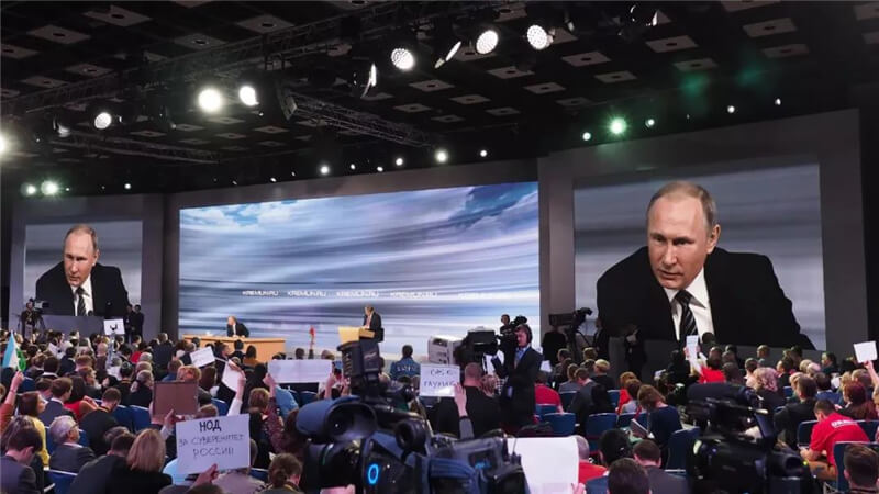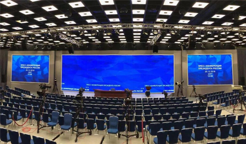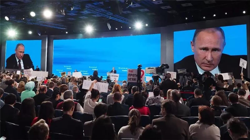 這是繼2012年12月20日普京總統(tǒng)新任期首次新聞發(fā)布會后,活動方第二次采用艾比森P3.9mm LED顯示屏用于普京的大型活動。由于2012年普京發(fā)布會上艾比森LED顯示屏的卓越顯示效果,在2013年的普京連線上,直至延續(xù)到2018年的普京連線,以及2018年的普京新聞發(fā)布會上均采用同一批次的艾比森P3.9mm顯示屏。