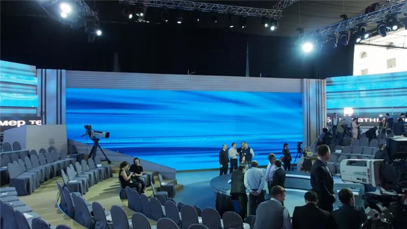 “普京連線”以及“普京新聞發(fā)布會”全程由專業(yè)攝像機拍攝,對背景主屏的刷新率要求嚴苛。而在1/2000秒的專業(yè)相機和攝像機的拍攝情況下,艾比森P3.9mm產(chǎn)品保持畫面高清細膩流暢,無頻閃線、無晃動,既為活動渲染了現(xiàn)場氛圍,也為全球觀眾帶來了清新、舒適的視覺感受。