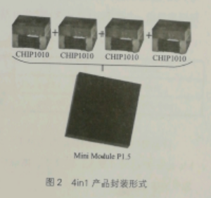 全彩LED表面貼裝的形式主要有PLCC-6、PLCC-4等,細(xì)分為正面發(fā)光的 TOP LED和線路板上封裝的 CHIP LED TOP LED也難以適應(yīng)封裝尺寸的要求,因此逐漸轉(zhuǎn)向 CHIP LED。主流小間距LED顯示屏產(chǎn)品的點間距為P1.6、P1.5、P1.2,一般用CHIP1010、CHP0808規(guī)格的器件;部分實力廠家推出的1.0mm點間距的顯示屏已經(jīng)達(dá)到量產(chǎn)水平,點間距為0.8mm的顯示屏已突破關(guān)鍵技術(shù)節(jié)點,點間距為P0.7、P0.6、P0.5的產(chǎn)品也陸續(xù)出現(xiàn)。由于尺寸越來越小、密度越來越高,顯示屏的貼片難度越來越大,防護(hù)性能越來越差,適應(yīng)性越來越低,長期使用的穩(wěn)定性和可靠性也越來越低。獨特的 Mini LED Module小間距LED顯示技術(shù)可完美解決上述問題。 Mini LED Module產(chǎn)品由兩組及以上RGB芯片集成封裝而成,每組RGB芯片單獨作為一個像素單元,獨立綁定到基板上,如圖2所示。Mini LED Module產(chǎn)品改變了像素單元的封裝方法,每個像素單元具有獨立的電性連接結(jié)構(gòu),與單個ChiPLED一致;像素單元的中心間距可調(diào),可以根據(jù)客戶的要求生產(chǎn)不同間距的產(chǎn)品。