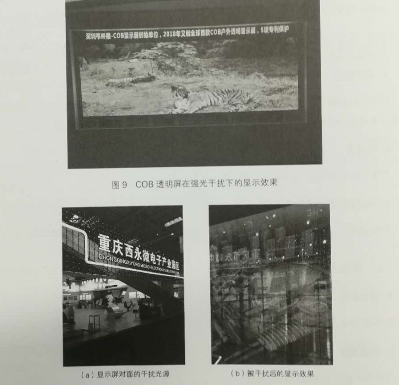 (2)屏前無(wú)玻璃,具有100%抗強(qiáng)光干擾能力,如圖9所示圖10展示的是采用傳統(tǒng)技術(shù)的產(chǎn)品在強(qiáng)光干擾下的顯示效果。