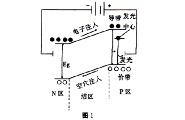 假設(shè)發(fā)光是在P區(qū)中發(fā)生的,那么注入的電子與價帶空穴直接復(fù)合而發(fā)光,或者先被發(fā)光中心捕獲后,再與空穴復(fù)合發(fā)光。除了這種發(fā)光復(fù)合外,還有些電子被非發(fā)光中心(這個中心介于導(dǎo)帶、介帶中間附近)捕獲,而后再與空穴復(fù)合,每次釋放的能量不大,不能形成可見光。發(fā)光的復(fù)合量相對于非發(fā)光復(fù)合量的比例越大,光量子效率越高。由于復(fù)合是在少子擴散區(qū)內(nèi)發(fā)光的,所以光僅在靠近PN結(jié)面數(shù)μm以內(nèi)產(chǎn)生。