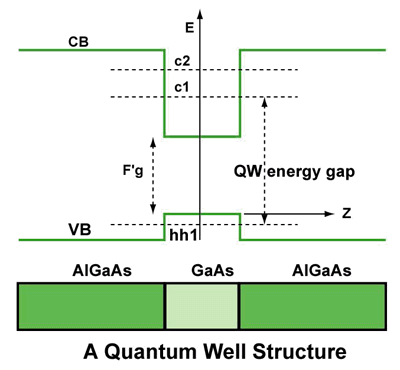 ▲量子井(Quantum Well;QW)的結(jié)構(gòu)圖。