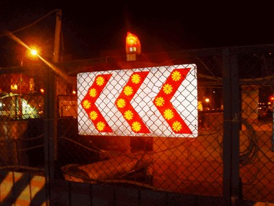 ▲亮度提升的LED已經(jīng)跨足到公眾場合的號志應(yīng)用,此為國內(nèi)工地外圍的交通方向指示燈,即是用HB LED所組構(gòu)成。
